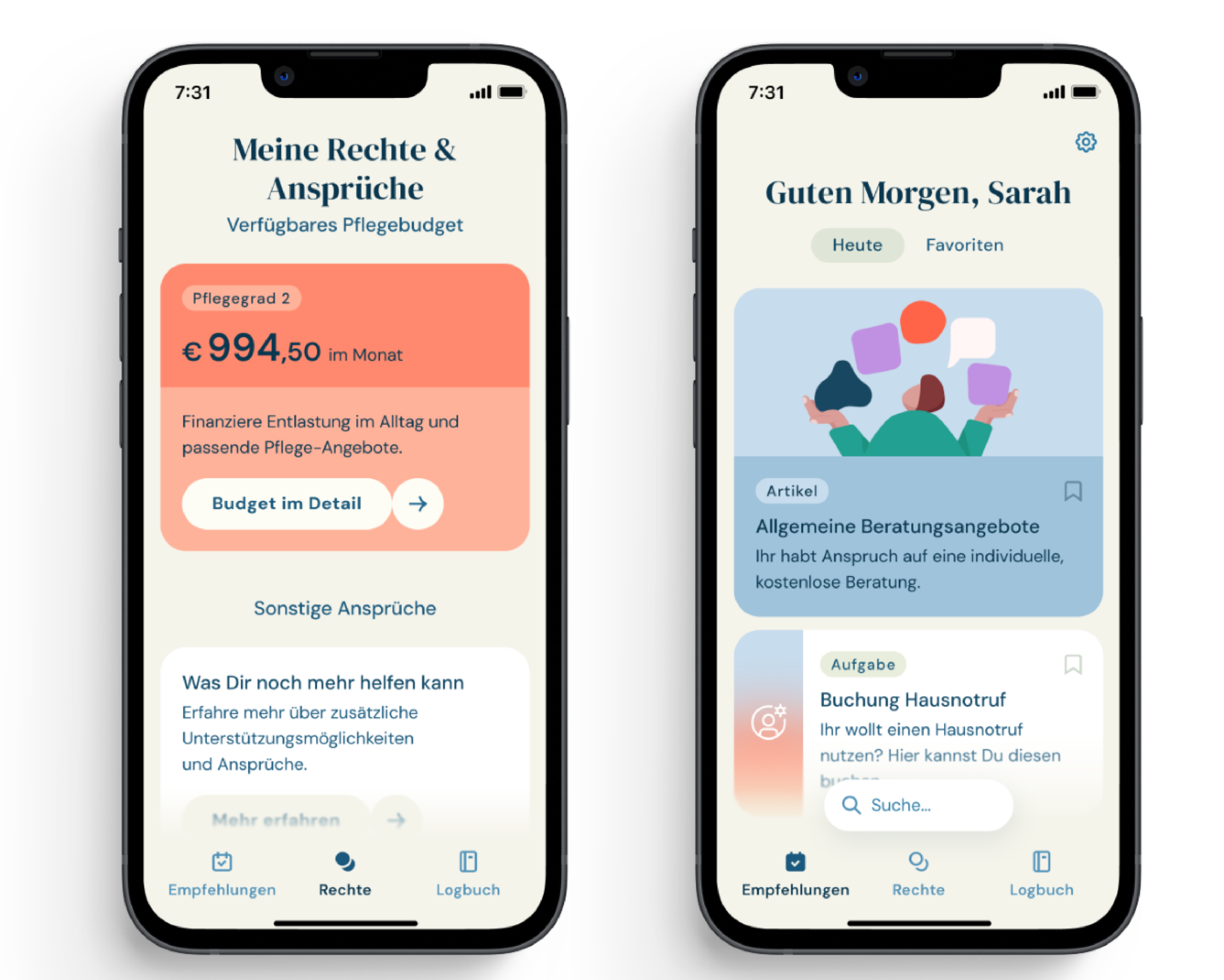 Welche Leistungen stehen mir zu? Was bedeutet welcher Pflegegrad? Die App macht Pflegeansprüche transparent und zeigt verständlich, welche Hilfen wann genutzt werden können.